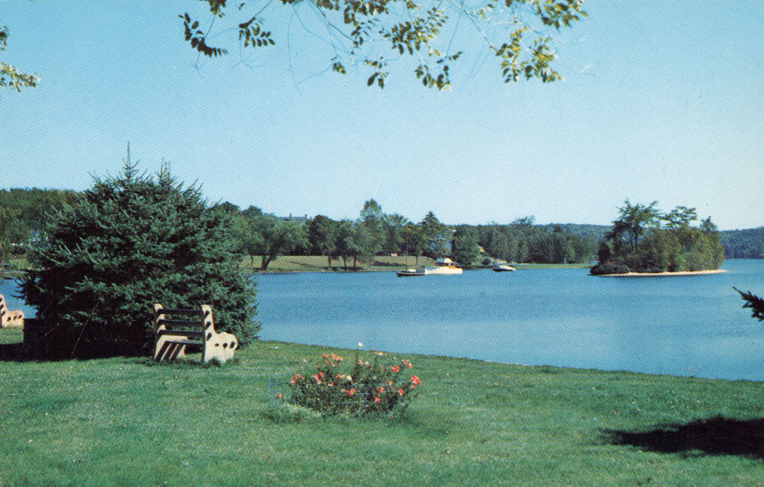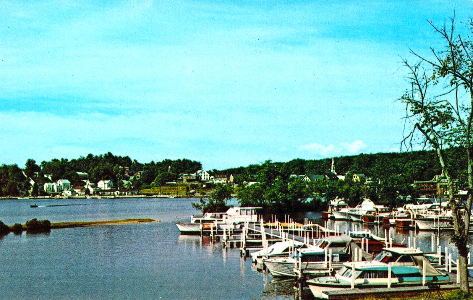 The park in the early 1960s. The view is towards Pleasant Street, before the construction of the Meredith Yacht Club. Indian Island is off-photo to the right.