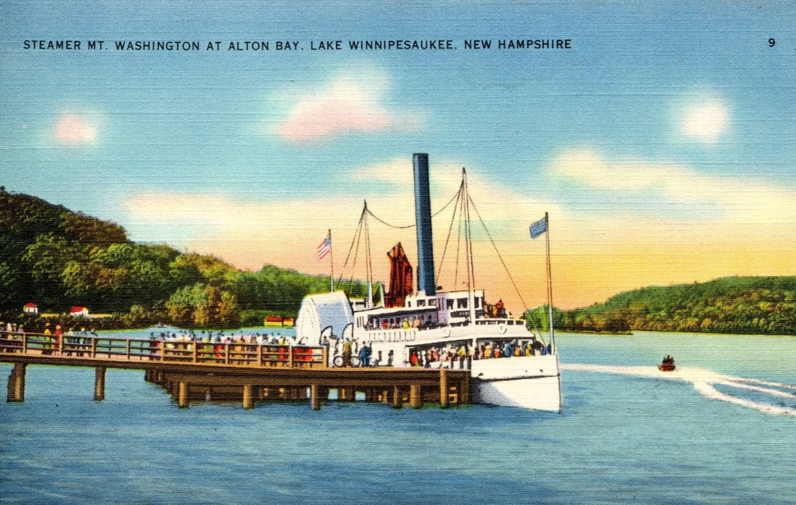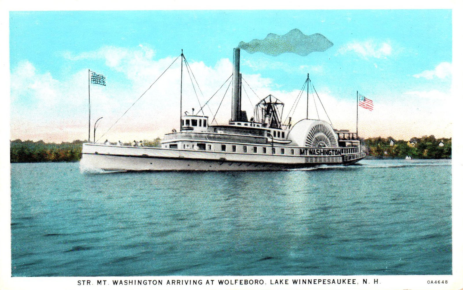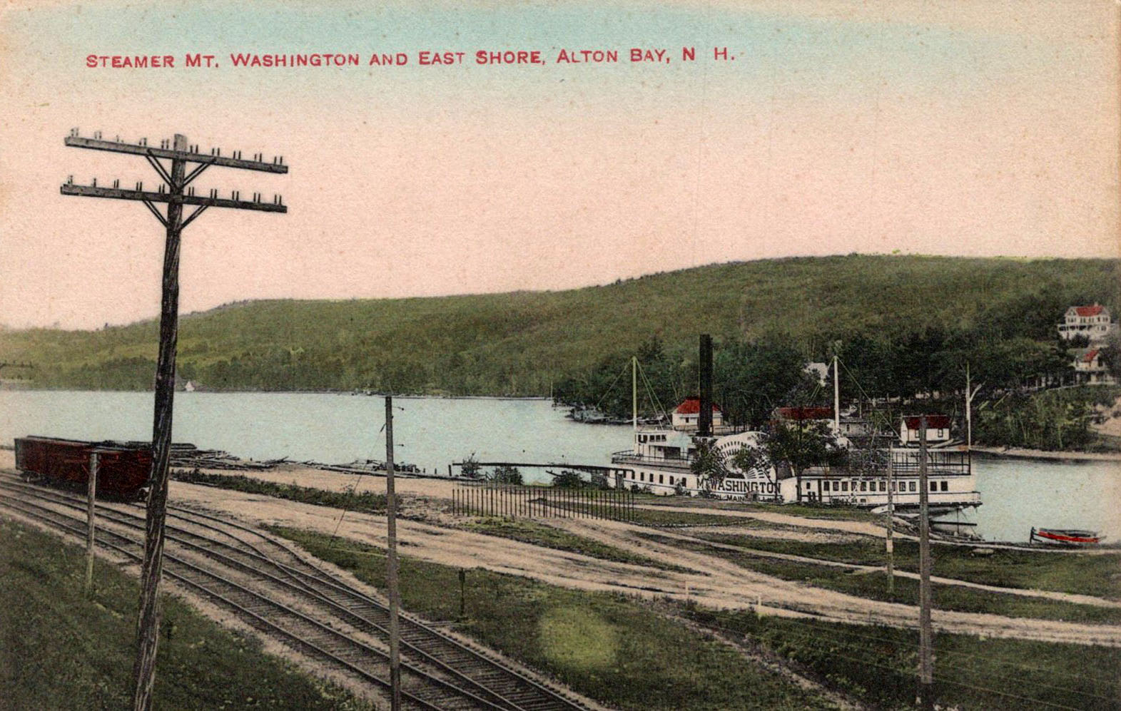 The next three photos show the Mount Washington run aground on One Mile Island in Center Harbor. The low-speed accident occurred in a fog, early in the season of 1910, and resulted in no damage to the vessel, although it took two days to dislodge her from her unintentioned berth.