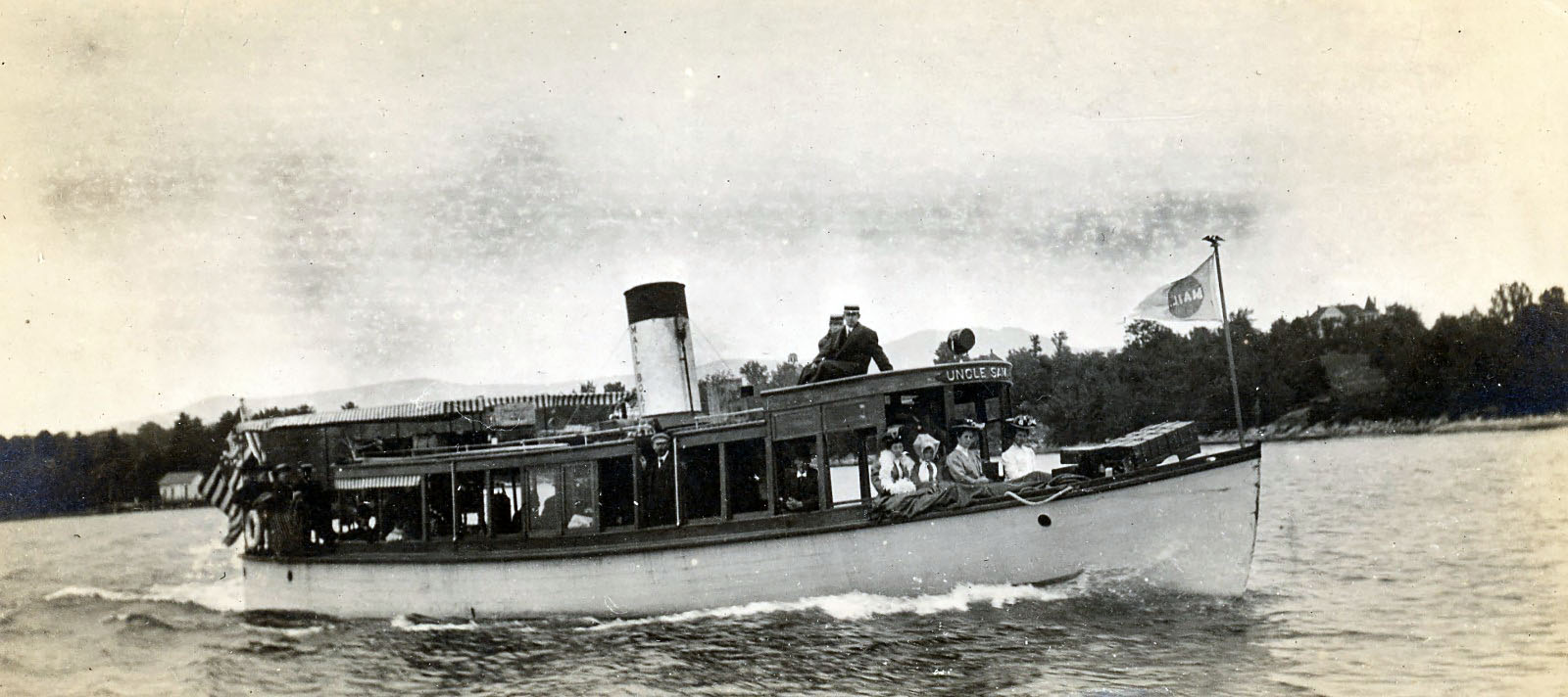 Uncle Sam had three lives. She was powered by a steam engine from 1906-1944 (1st life), and by a diesel engine from 1945-1961 (2nd life). She was the U.S. Mailboat almost her entire 1906-1961 existence, the exception being the years 1932-1933, when the mail was carried by the Marshal Foch. She was replaced as mailboat by the Uncle Sam II (3rd life), a converted WWII PT-Boat, from 1963-1967 (see photos below). The Do-Bo, owned and operated by Ed Lavallee, was the mailboat during the 1962 and 1968 summer seasons. In 1969, the mail franchise was transferred to the Sophie C., where it remains today.