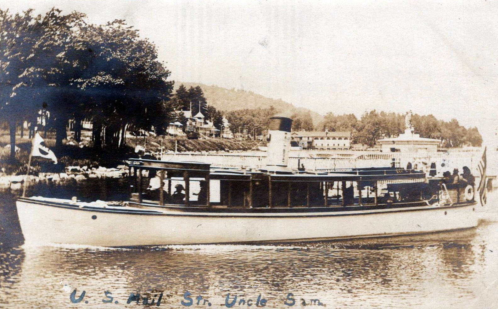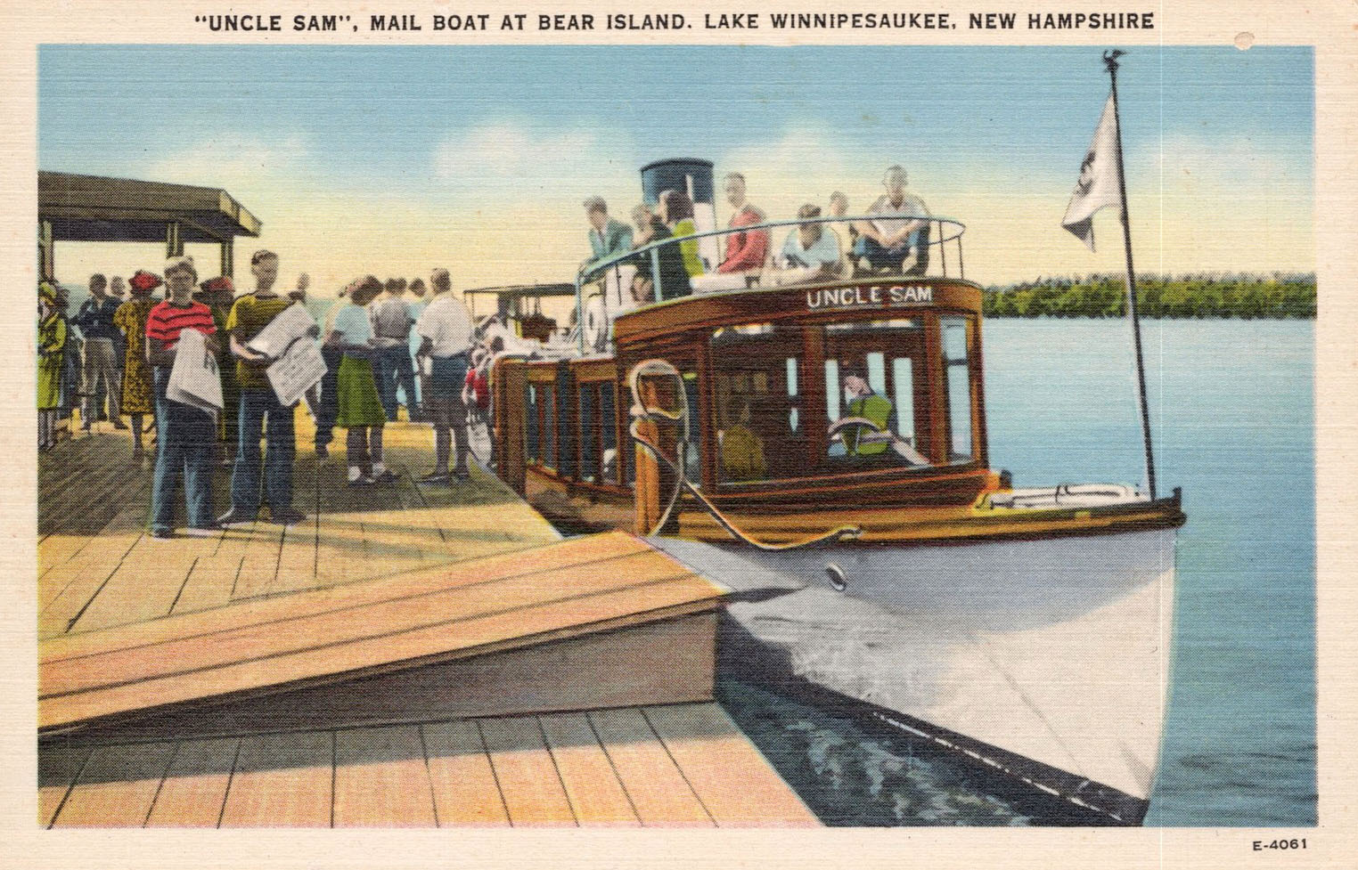 Mail service on Lake Winnipesaukee had begun in 1892. The initial service was called a “Star Route”. On postal Star Routes, private contractors delivered the mail, providing their own means of transportation, which could be of any type, including boats. The contractors were mail carriers only, and could not provide any other postal services. On Lake Winnipesaukee, there were several mail contractors. The Uncle Sam delivered mail from Weirs Beach to the southwestern half of the Lake, while the Columbia, and later the Tonimar, delivered mail from Wolfeboro to the northeastern half.
