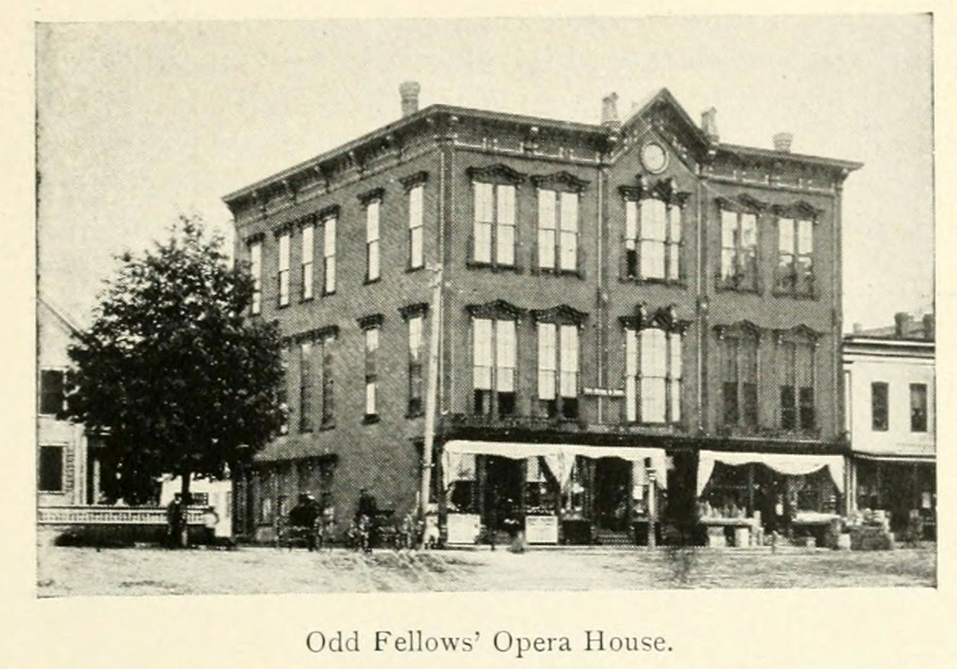 Detail of Lakeport Square from an 1883 map of Lake Village (Lakeport). The Lakeport Opera House, marked with a “J” on the roof, is clearly drawn in. At that time, it was called Moore’s Opera House, and it was labeled as such on the map key.