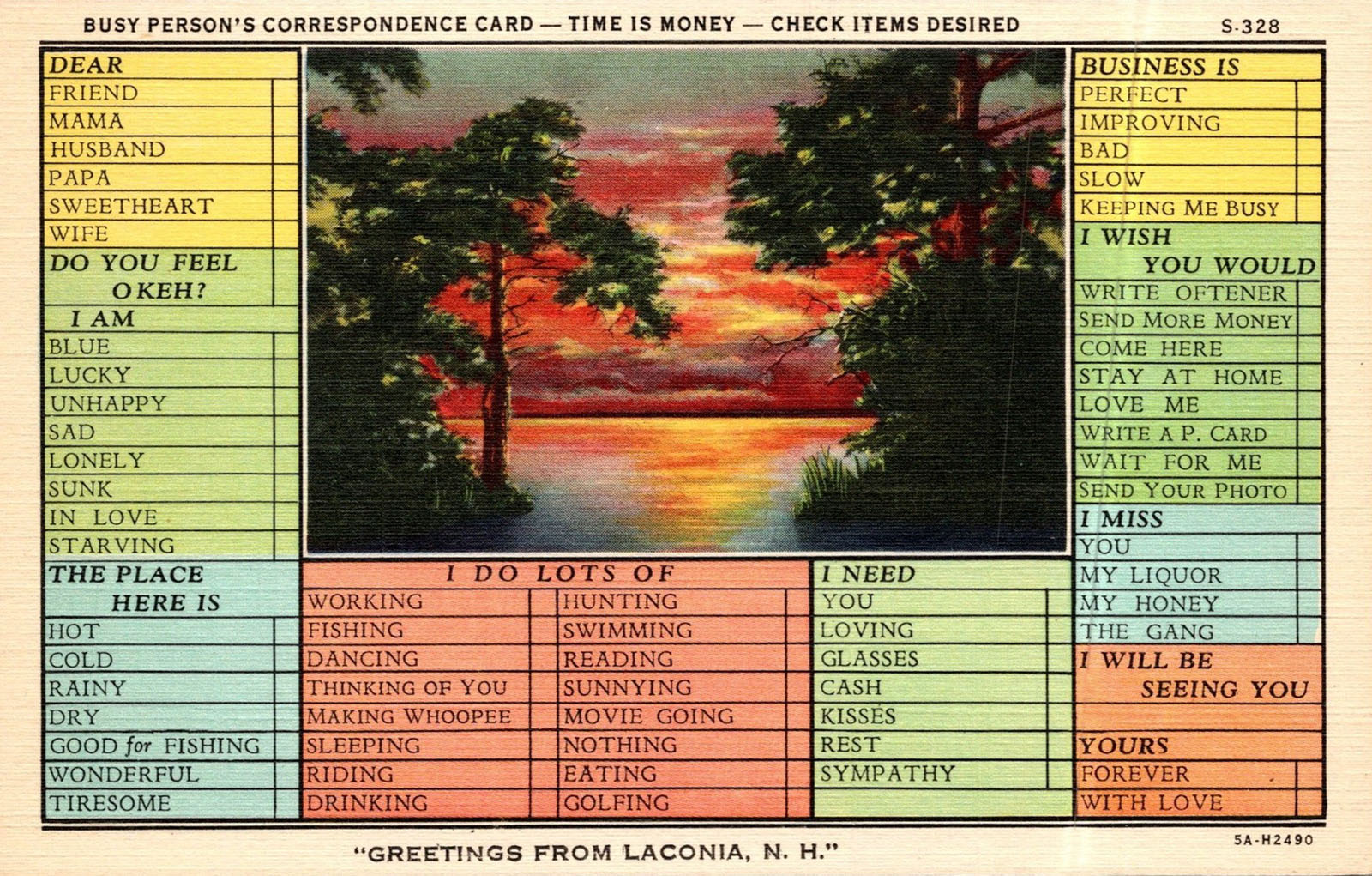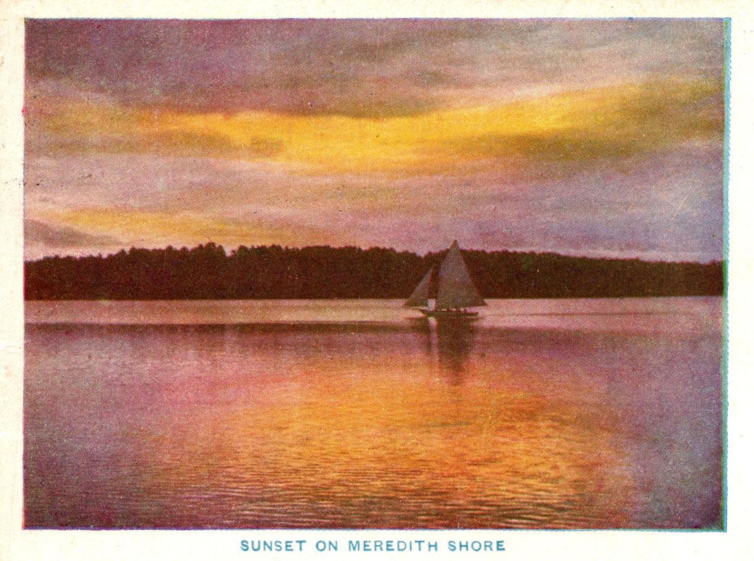 Historical postcards of the Weirs Channel looking south. In the first postcard, the Belle of the Isles is steaming away towards “Lake Paugus”. The second postcard is an earlier view of the Channel, towards “Long Bay”. Paugus Bay was first called “Long Bay”, then “Lake Paugus”, before it evolved to its current nomenclature.