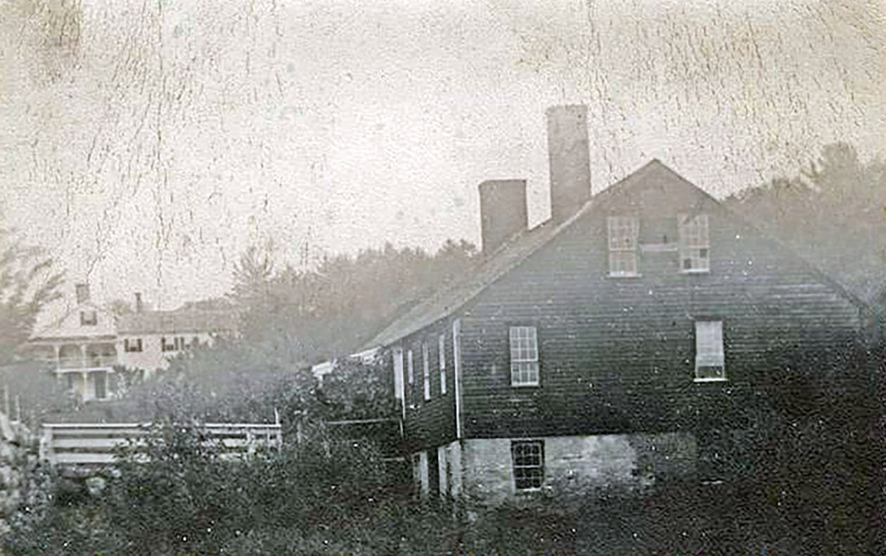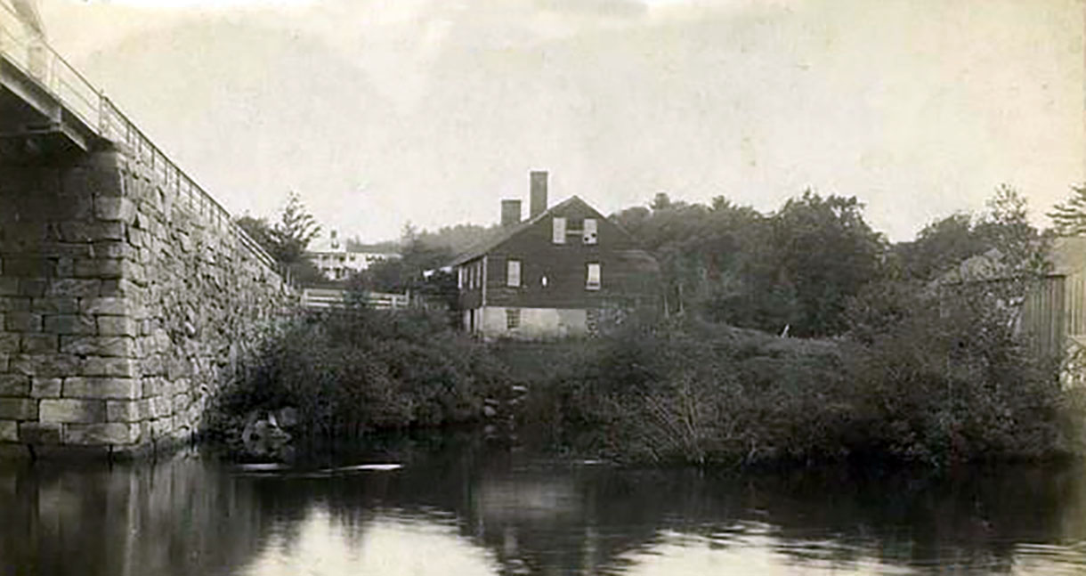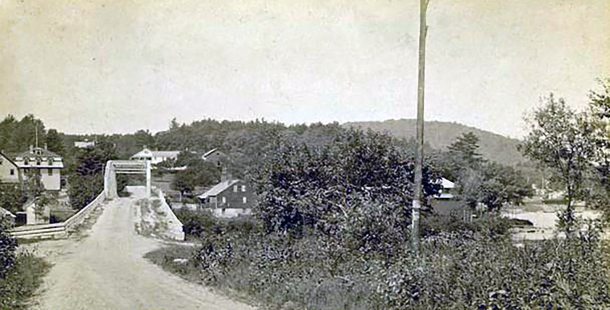 *The building roof in the photo is in the location of the original Weirs Music Hall. However, there is a 3-year discrepancy between the date of construction of the hall (1886) and the date of replacement of the wooden bridge with the iron one (1883). In the photo below of the Old Red House, the photo that is the basis of the engraving, one can see a different building to the right of the house, in the location where the Music Hall would soon be built. The purpose of the prior building is unknown.