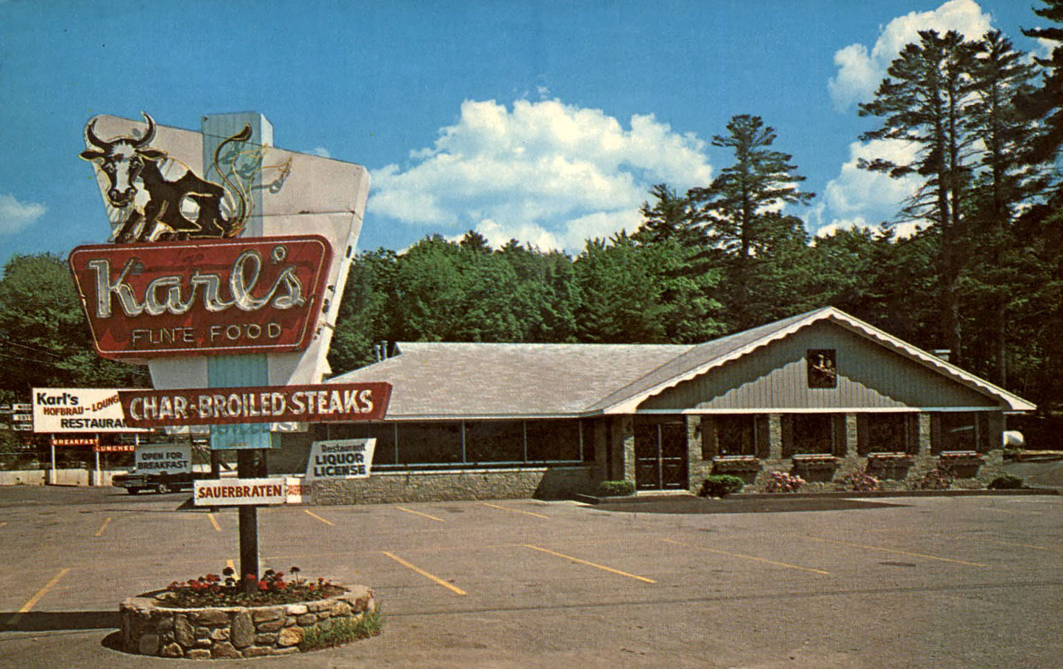 Karl’s was located at the intersection of Routes 3 and 11B in Weirs Beach. The restaurant, named after owner Karl Stierle, opened on June 11, 1958. In 1998, the restaurant was sold and renamed Crossroads. The building burned on October 21, 2005. The empty parcel then became a parking lot for the next 20 years. In 2024, a project to redevelop the property was approved. The proposed development would include 27 condos in a 5-story building. As of 2026, the lot remains empty.