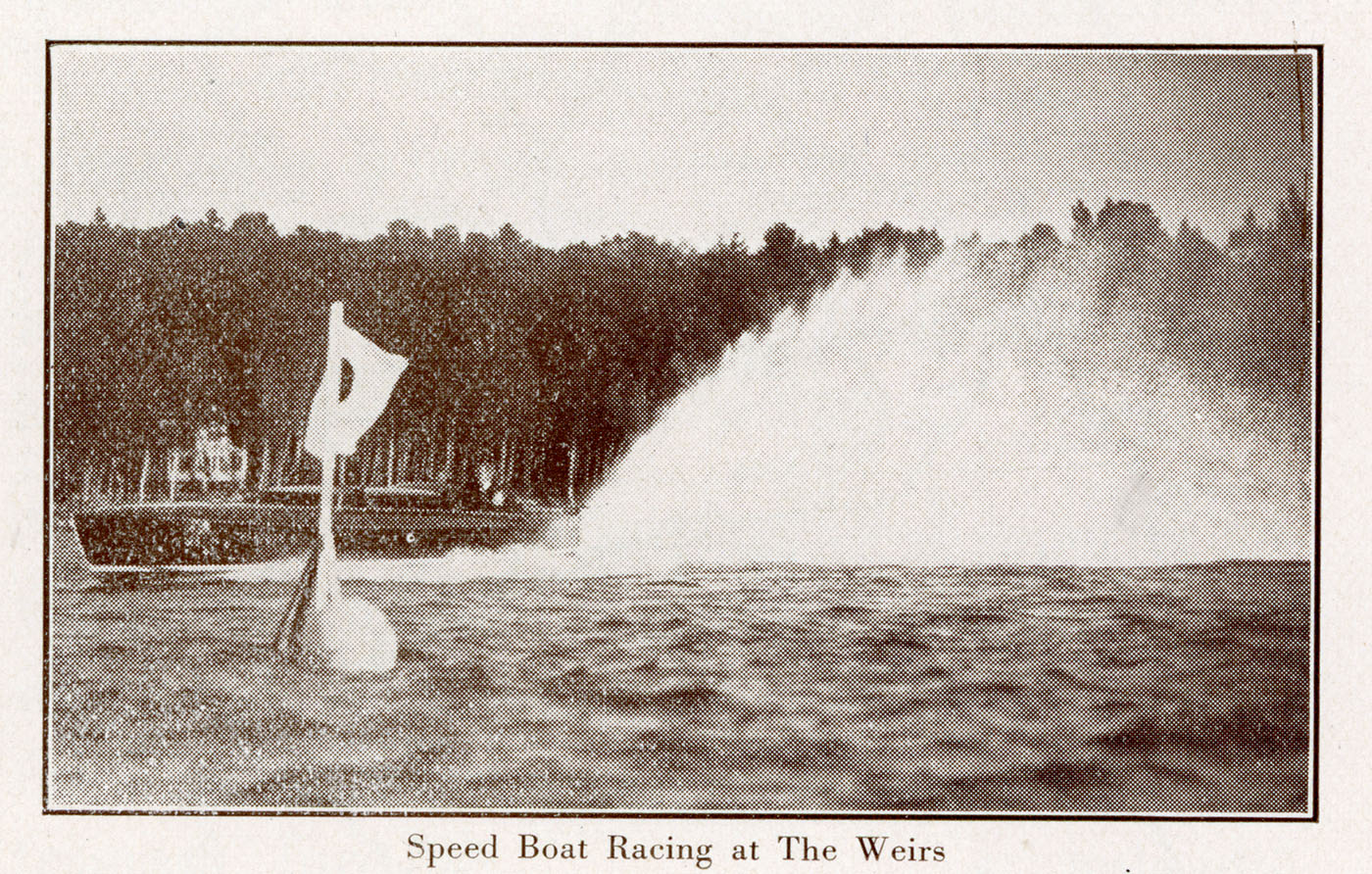 A photo from a 1916 Lake Winnnipesaukee booklet by the B&M railroad captioned “Motor-boat Races at Weirs”.