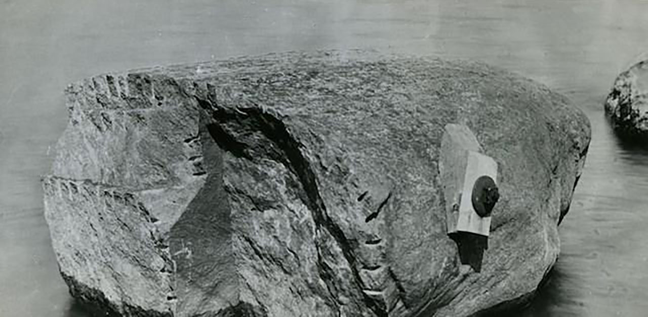 Close up photo of Endicott Rock, dated August 28, 1885.