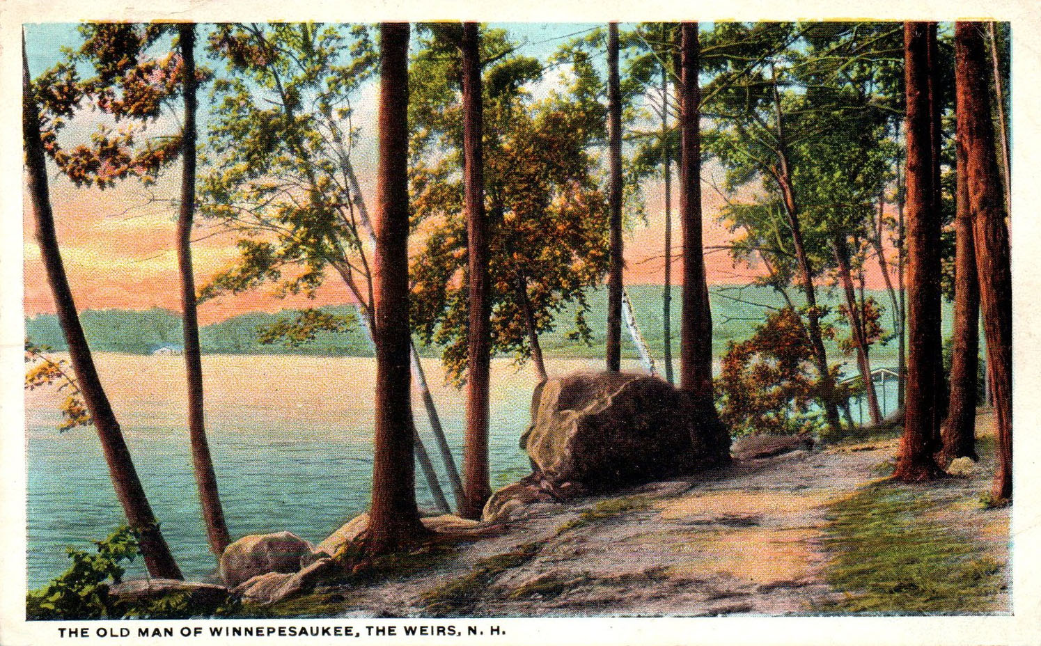 Not to be confused with the Old Man of Winnipesaukee on Doe Point, there was another “Old Man” rock in Weirs Bay, located on Eagle Island. Eagle Island is located close to Governor’s Island. There is a narrow channel between the two islands used by boats leaving or entering Weirs Bay. There is now a house on the privately-owned island. It is not known if the rock is still there.