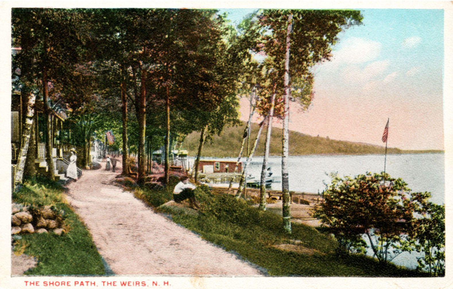 The Shore Path was a walkway along the eastern, Lake Winnipesaukee edge of the Methodist Campground. It followed the shoreline around Doe Point, from today’s Winnipesaukee Pier to the Akwa Marina. For the most part, the pathway no longer exists, as private lakefront property homeowners have closed off access over the years. As of 2025, there are 18 separate, shorefront properties along the former shore path, with an average valuation of $1,350,000.