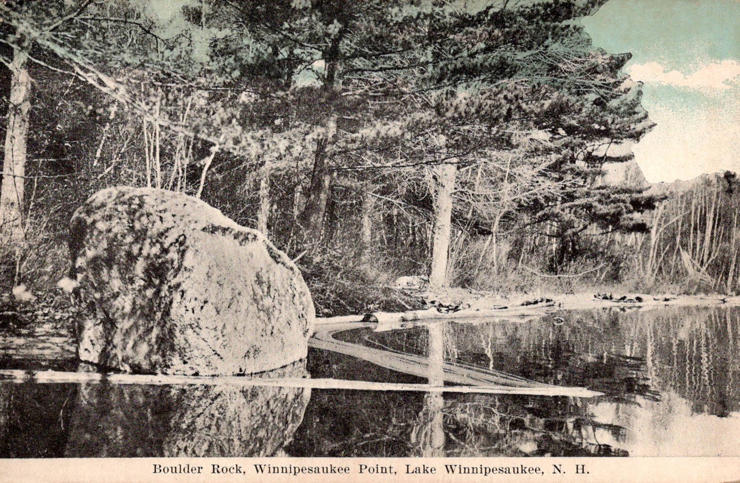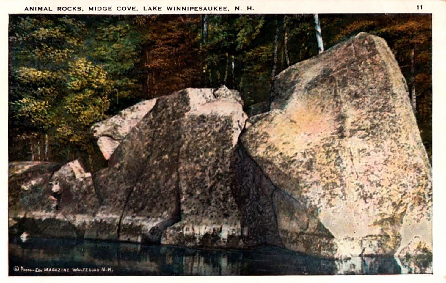 The theme of an old man pictured in rock was widespread during the early postcard era. Here is a postcard of another “Profile Rock” on Lake Winnipesaukee, this time in Tuftonboro.