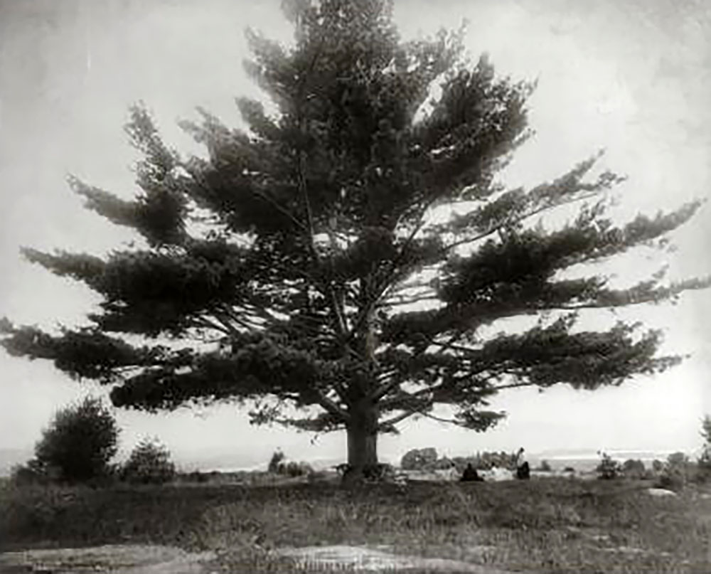 Whittier’s friend and frequent companion, Lucy Larcom, wrote about standing beneath the tree and watching the sun drop into Squam. “The sun went down like a ball of crimson flame, hot and red, in a band of warm mist that hung over the hills. The Wood Giant stood above me audibly musing. His twilight thoughts were untranslatable, but perhaps the wood thrushes understood, for they sent up their mystical chant from the thickets below, in deep harmony with the music of his boughs.”