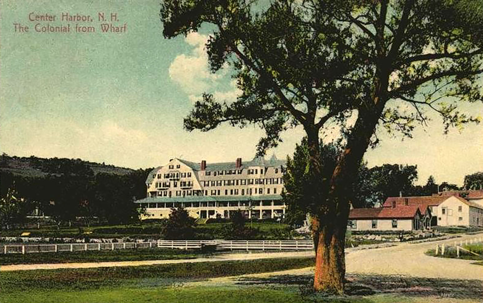 The Colonial Hotel was built in 1888. It replaced the original Senter House, which had burned down. When first built, the hotel retained the name of the Senter House. The new hotel was much larger than the original. It became the grand hotel of Center Harbor. New owners changed the name to the Colonial Hotel in 1904. The Colonial burnt down in 1919 and was not replaced.