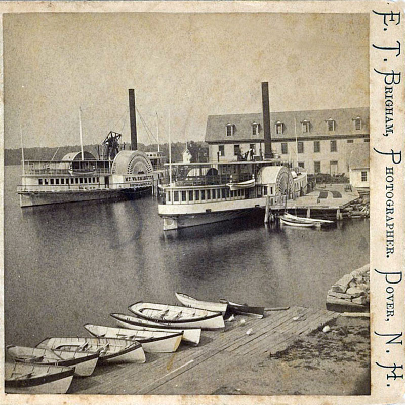 An engraving from the 1874, second edition of John B. Bachelder’s “Popular Resorts and How to Reach Them”, shows the Lady, and the relatively brand-new Mount (two years old at the time), in Centre Harbor. An 1873 color sketch of this scene by artist John Badger Bachelder can be found on the New Hampshire Historical Society website here.
