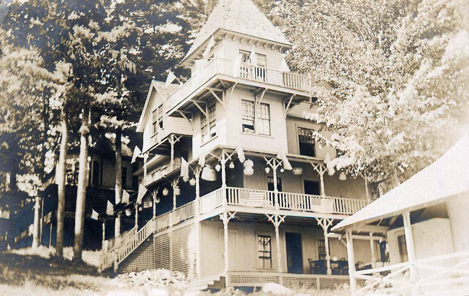 Fourteenth Regiment building in 2007. The third-floor dormer, 2nd-3rd floor tower, and side stairs of the earlier building are gone, a result of severe damage from the 1938 hurricane. The second floor balcony remains.