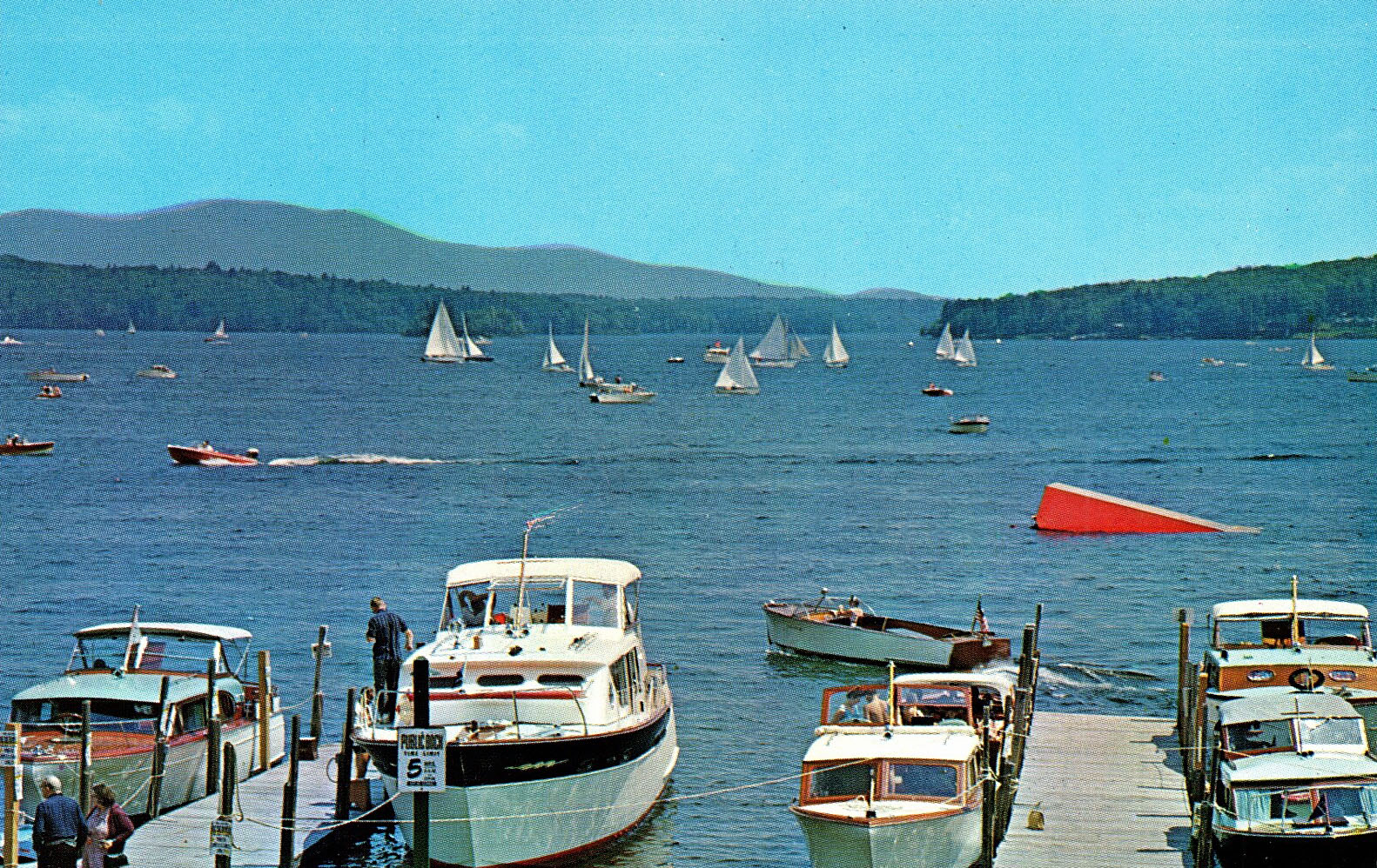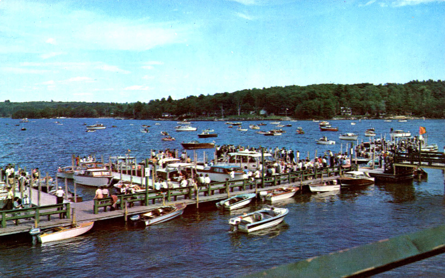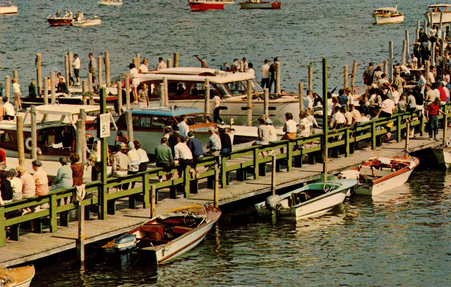 This photo shows (from left to right) the Mount Washington, Sophie C., Foxy I, and Foxy II cruise boats at the docks. The last boat on the right can’t be identified.