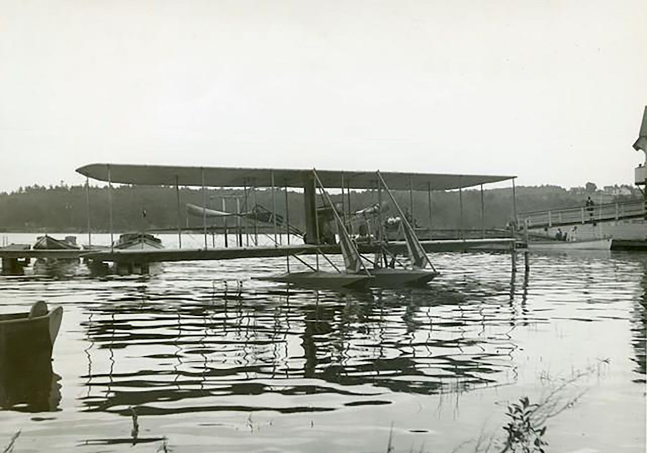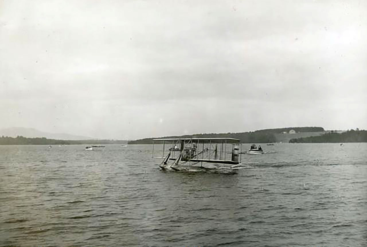Earlier, in July 1912, Weirs Beach had been thrilled by the week-long aerial demonstrations of aviator Harry Atwood. His Burgess-Wright Hydro-Aeroplane landed on two pontoons. In the long run, this floatplane design became the standard design for seaplanes. During his visit to Weirs Beach, Atwood took several passengers up on “quite a number of flights…all of them reported themselves well satisfied with the novel experience”. These were the first seaplane rides ever given in Weirs Beach, occuring before there was a permanent seaplane base.