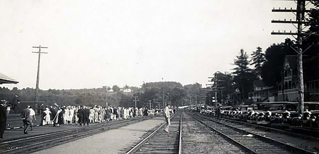 In addition to the four sets of railroad tracks, from 1899-1924, the trolley tracks of the Laconia Street Railway (#5) (see below) extended along Lakeside Avenue as far as the Lakeside House. The Laconia Street Railway also had a siding (#6) in the center of town to allow idling electric trolley cars to be bypassed.