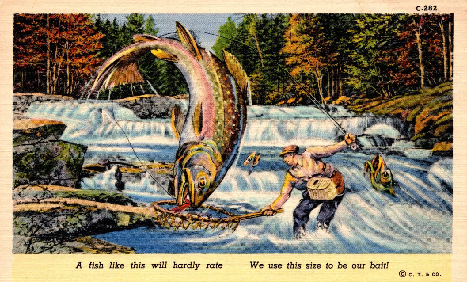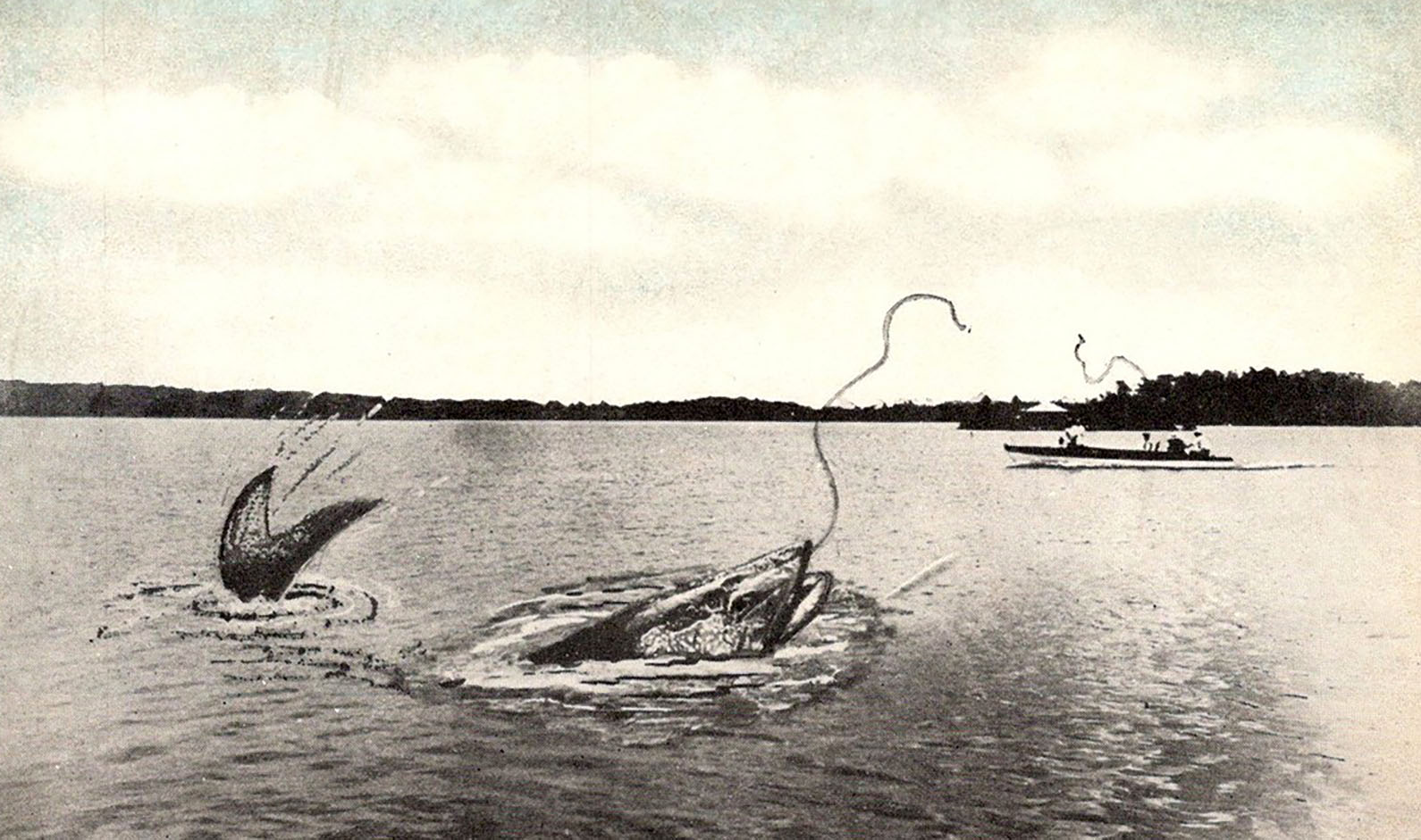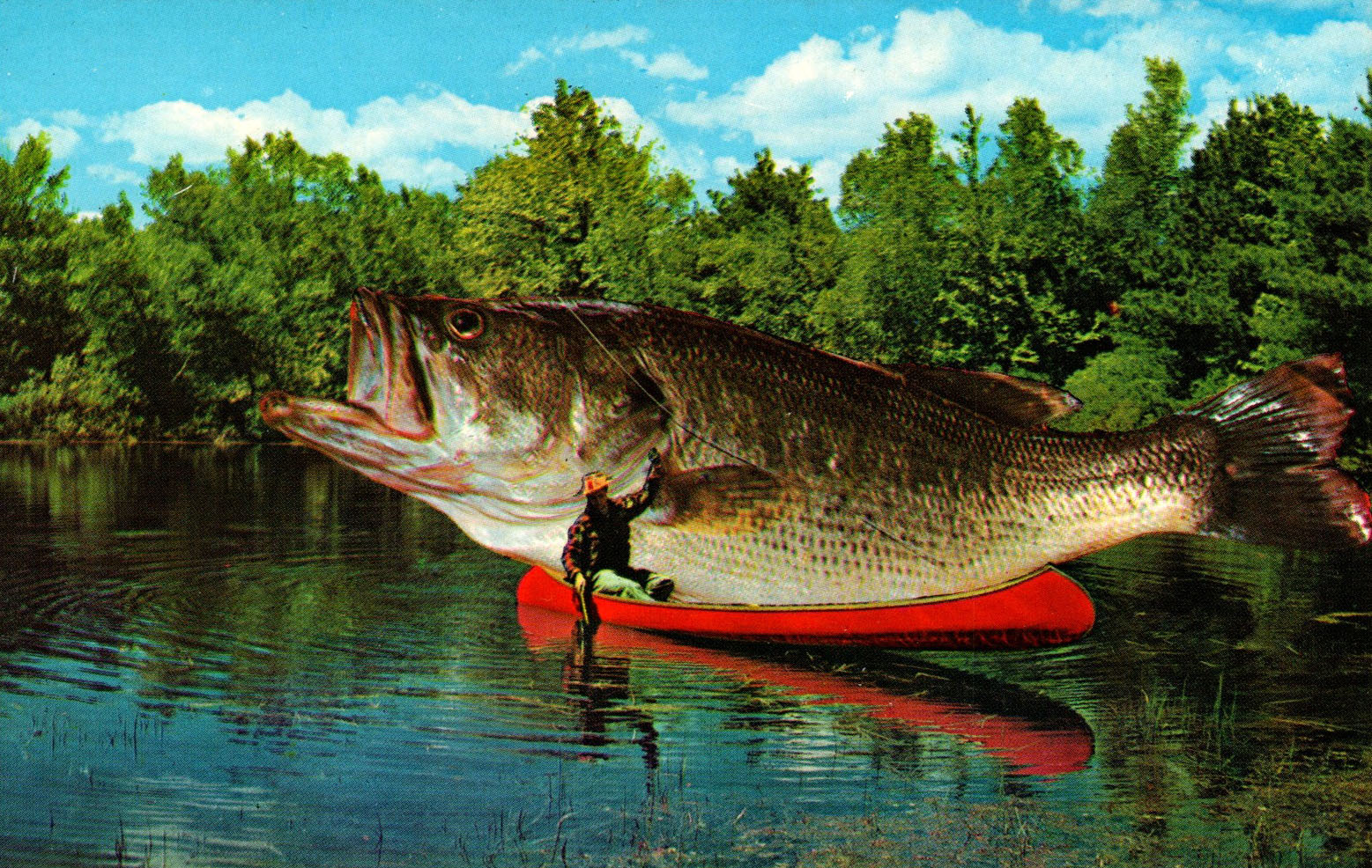 Generic postcards all extol about how good the fishing is in Lake Winnipesaukee and its surrounding towns. Some cards humorously exaggerate the point, with depictions of giant fish being caught.