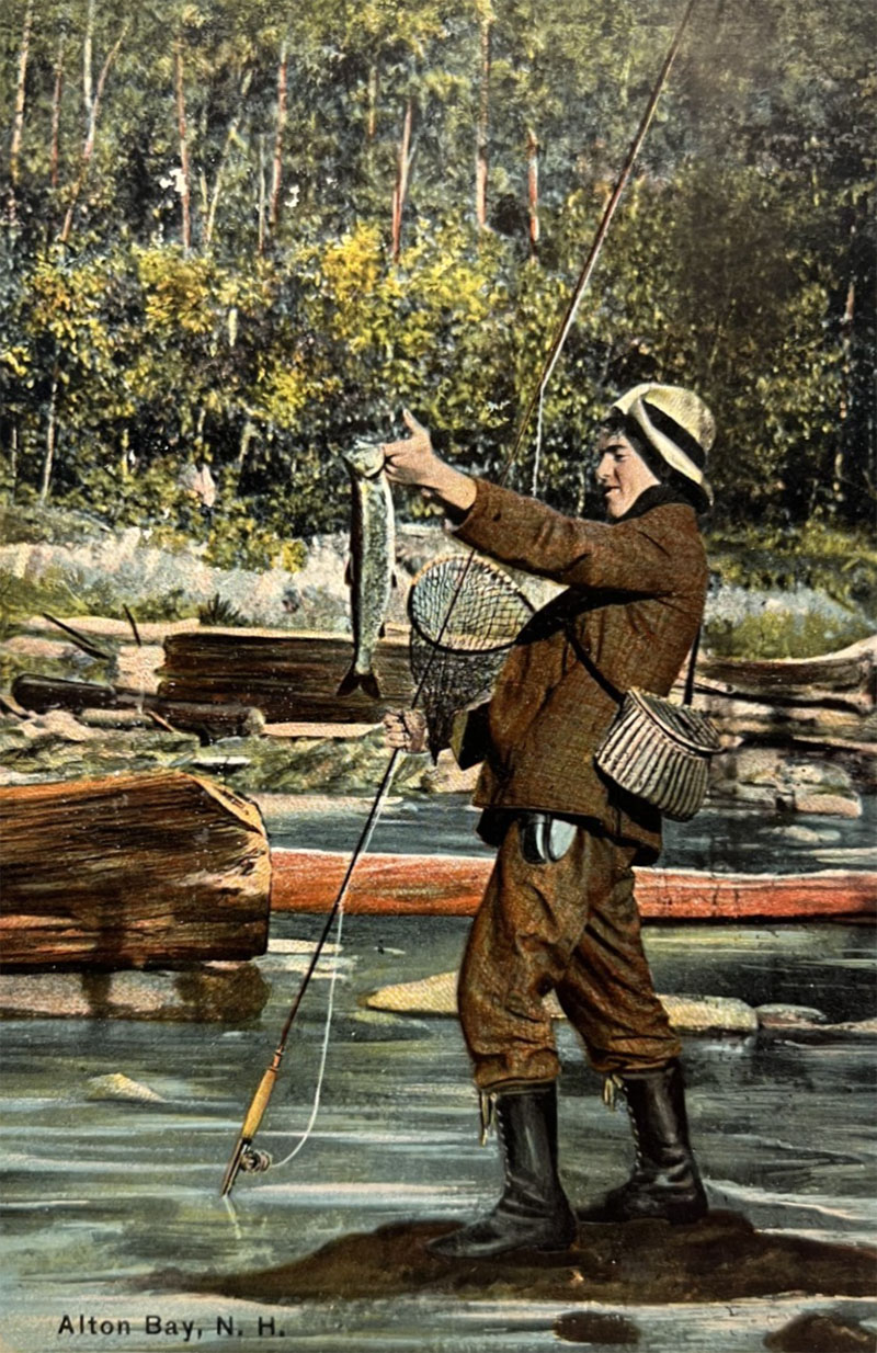 “Fishing is Good and the View is Grand at Lake Winnepesaukee, N.H.” Even the ladies back then liked to fish.