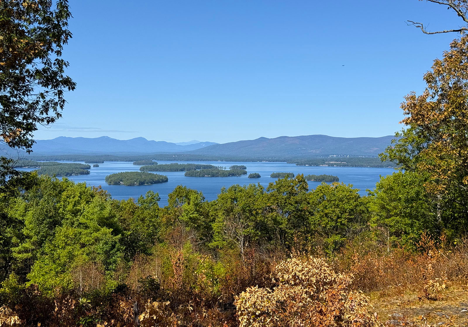 A contemporary view of Lake Winnipesaukee from the top of Locke’s Hill, taken on September 10, 2025. Mt. Washington is visible in the far distance.