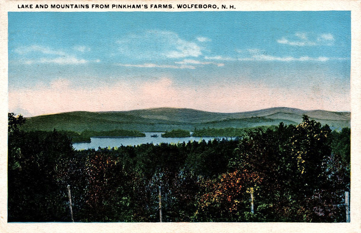 Although the Prescott Farm seen below shared the same name, and even looked similar, to the Prescott Farm in Weirs Beach, this Prescott Farm was actually located in Wolfeboro, near what is now the Kingswood golf course. It is not known what, if any, relationship there was between the two Prescott Farms. The property was first the Pinkham farm, then the Prescott farm, then the King’s Hill Inn, then the Hotel Prescott, then the General Wolfe. It is now known as the Windrifter Resort. Here’s a 1920’s view of the southern side of the Prescott Farm in Wolfeboro, before the structure was expanded.