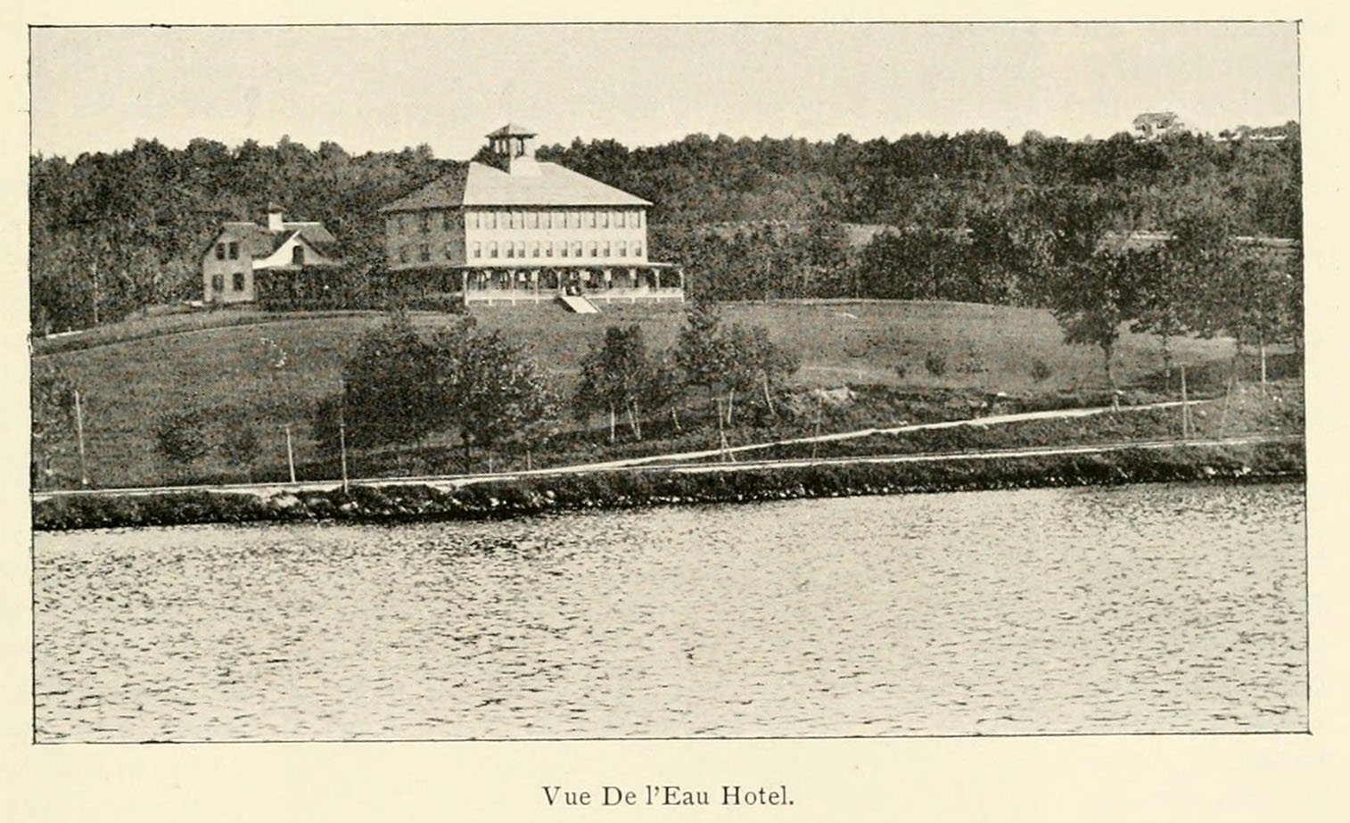 The new Vue De L’Eau Hotel opened in April, 1897. The name means “Water View” in French. An earlier version of the hotel was listed in the 1892 “Summer Excursions” booklet published by the Concord & Montreal railroad.