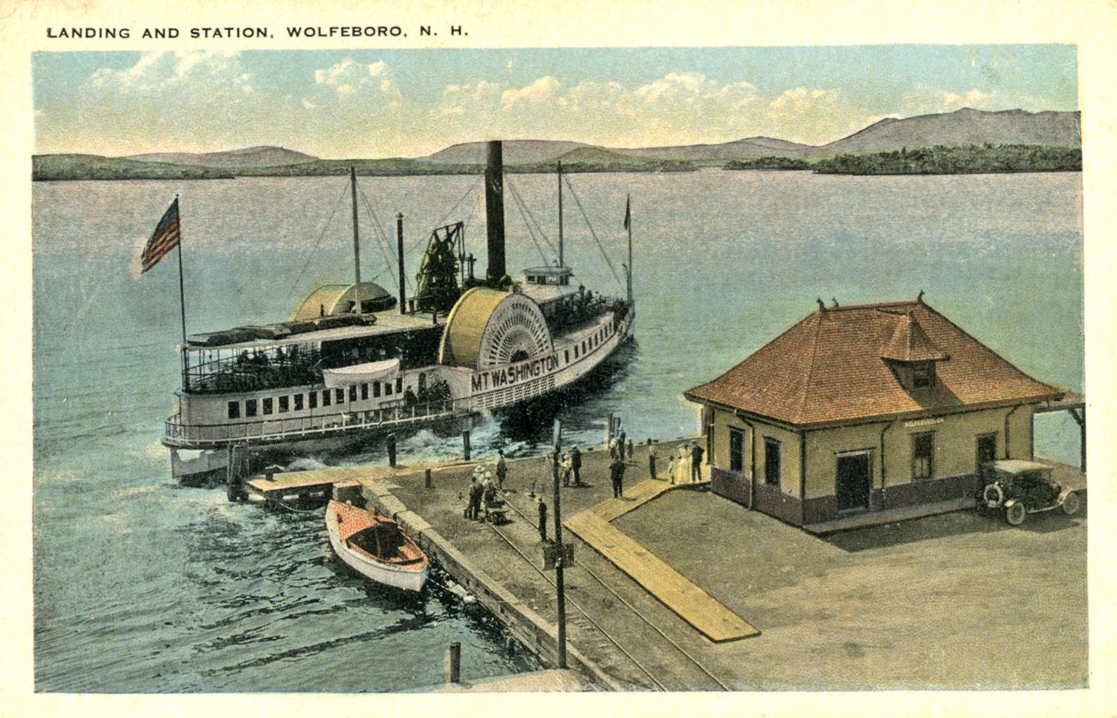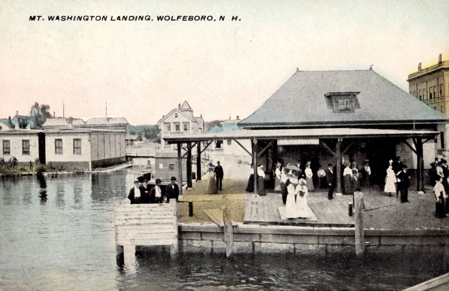 The first station on the wharf was a large building that served as a freight depot and a waiting room for passengers of both the Lady of the Lake and Mount Washington steamers. The building also featured offices and many retail shops, including a pool hall, a saloon, a laundry, a dance hall, and a roller skating rink.  On May 28, 1899, the building burned, in what was one of the most devastating fires in Wolfeboro history. The second station on the wharf, the much smaller Lake Station, was built in 1903, and was mainly just a freight depot. After regular passenger service to the wharf ended in June 1942, the Lake Station was torn down and replaced by a restaurant building.