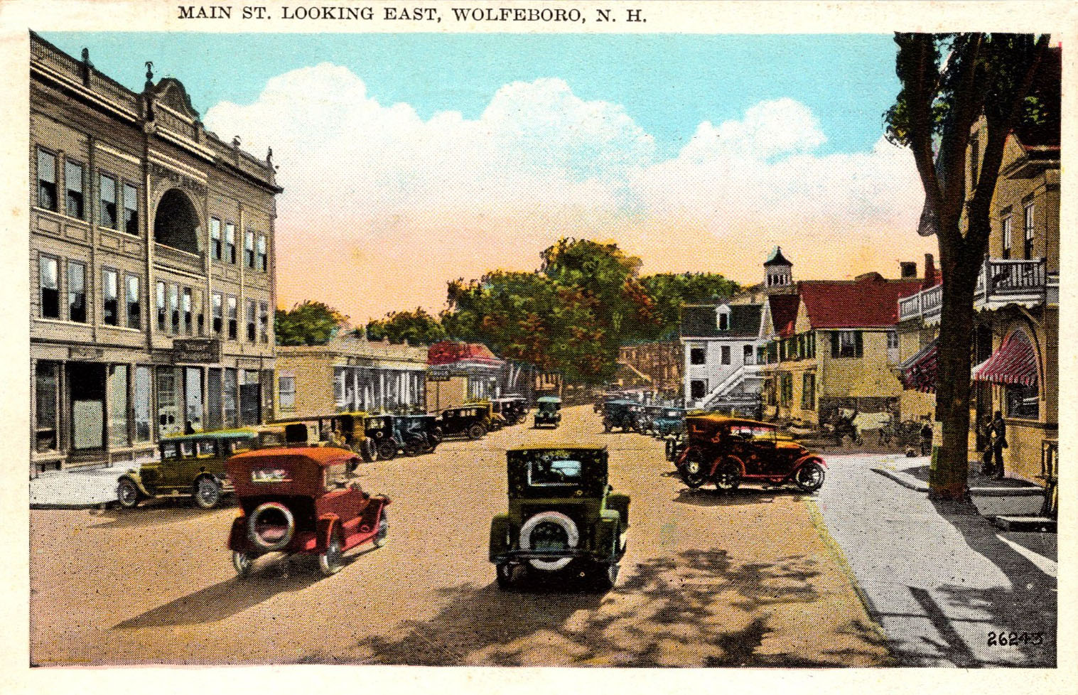Wolfeboro’s Post Office Square, circa 1905 to circa 1925. The large, 3 story building at the center was known as the “Peavey Block”.