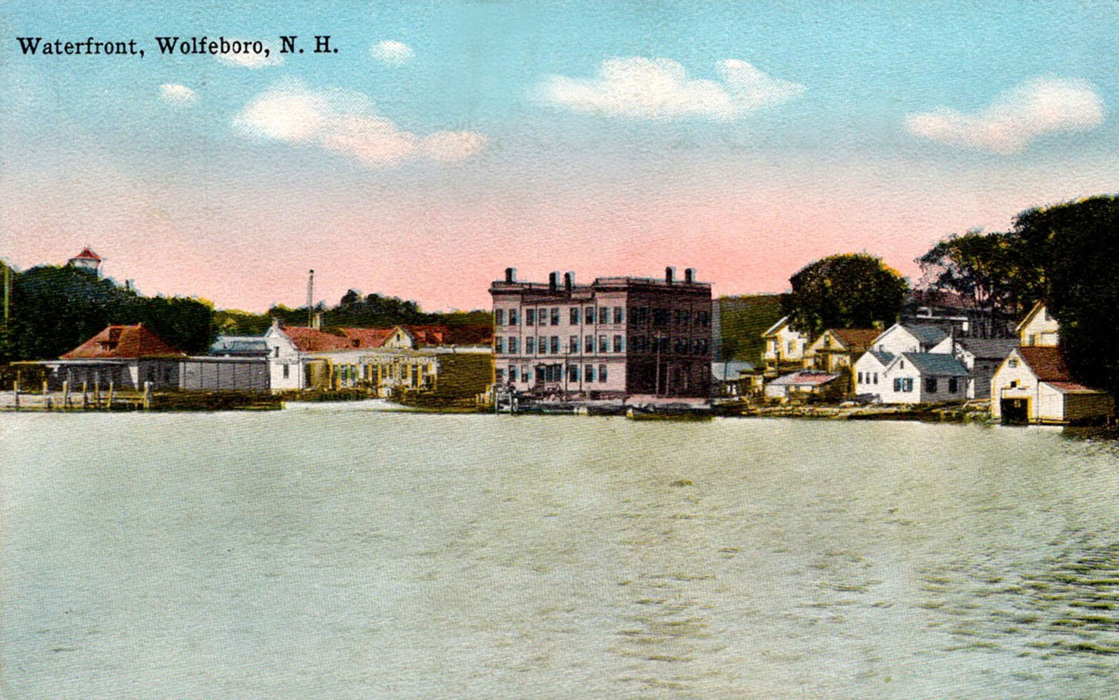 Built in 1890, Brewster Memorial Hall, also known as the Wolfeboro Town Hall, is seen at the top of many of the above views looking South. The building is still the home of Wolfeboro’s municipal offices. The clock tower still functions and features a bell made by Paul Revere which rings out every hour.