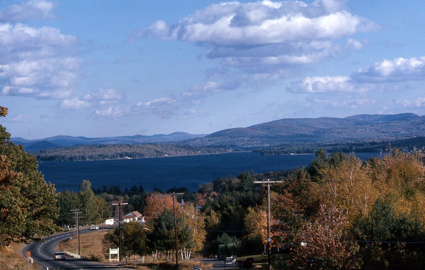 The following postcard views, taken from the top of a nearby hill, show the former Loch Haven Inn & Cottages, located on Route 3 (Daniel Webster Highway) in Meredith, in the foreground, and Meredith Bay and the Belknap Mountains in the background. The 150 acre resort opened in 1933. From 1946-1959, the facility served as a conference center for the Massachusetts Episcopal Diocese. On July 1, 1959, the facility once again became a resort, with a 15 room lodge, an 8-bedroom cottage, a restaurant, and 18 individual cottage units. On March 13, 1966, the Inn burned down in a fire. The Laconia Citizen reported that “Owner Mrs. Eveline Contigiani and her son, Charles, nine, were able to escape from living quarters in the Inn after being awakened by the barking of their poodle.” Around 1980, more than half (82 acres) of the original acreage of the resort was sold, and it became the Grouse Point Club private housing development. The rest of the land was conserved. The Lodge (see below) was converted to the Burlwood Antique Center, which had about a 30 year run before it became the current Longview Country Store. Many of the Cottages were improved, enlarged and modernized and still exist today. The farm acreage was never actually part of Loch Haven. Seperately owned by a farm family since 1801, the farm was known as Longridge Farm until very recently, when it was renamed Picnic Rock Farm.