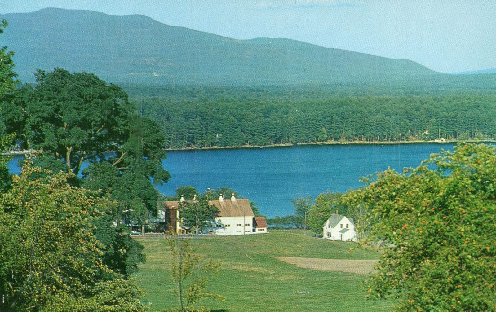 An aerial photo of Center Harbor from the early 1960s shows Dane Farm situated on a very undeveloped waterfront. Squam Lake is seen in the distance.