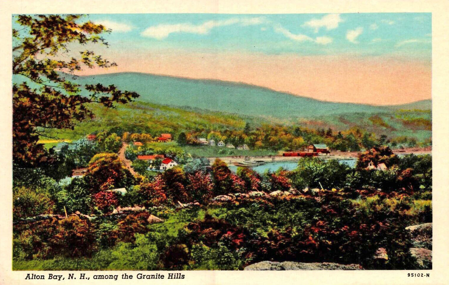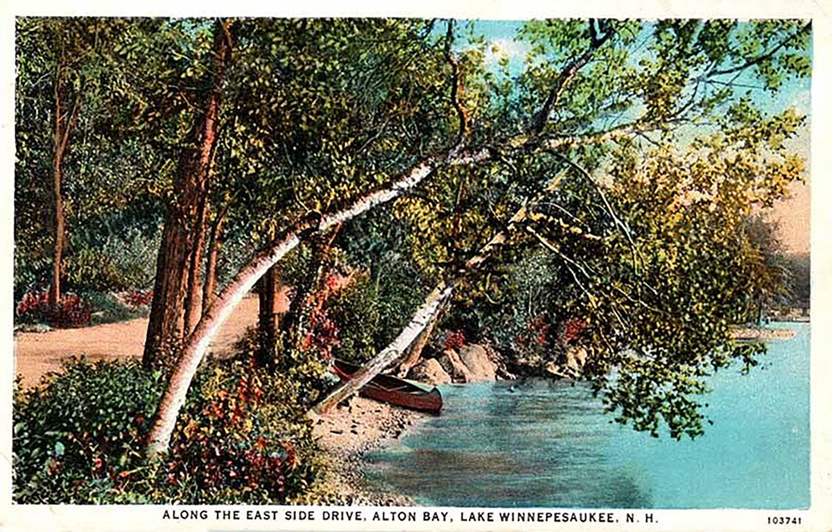 Notice the seaplane heading toward the beach. In 1947, seaplane rides were offered by Skinner Seaplane Service. Even today, there is still a seaplane base in Alton Bay.