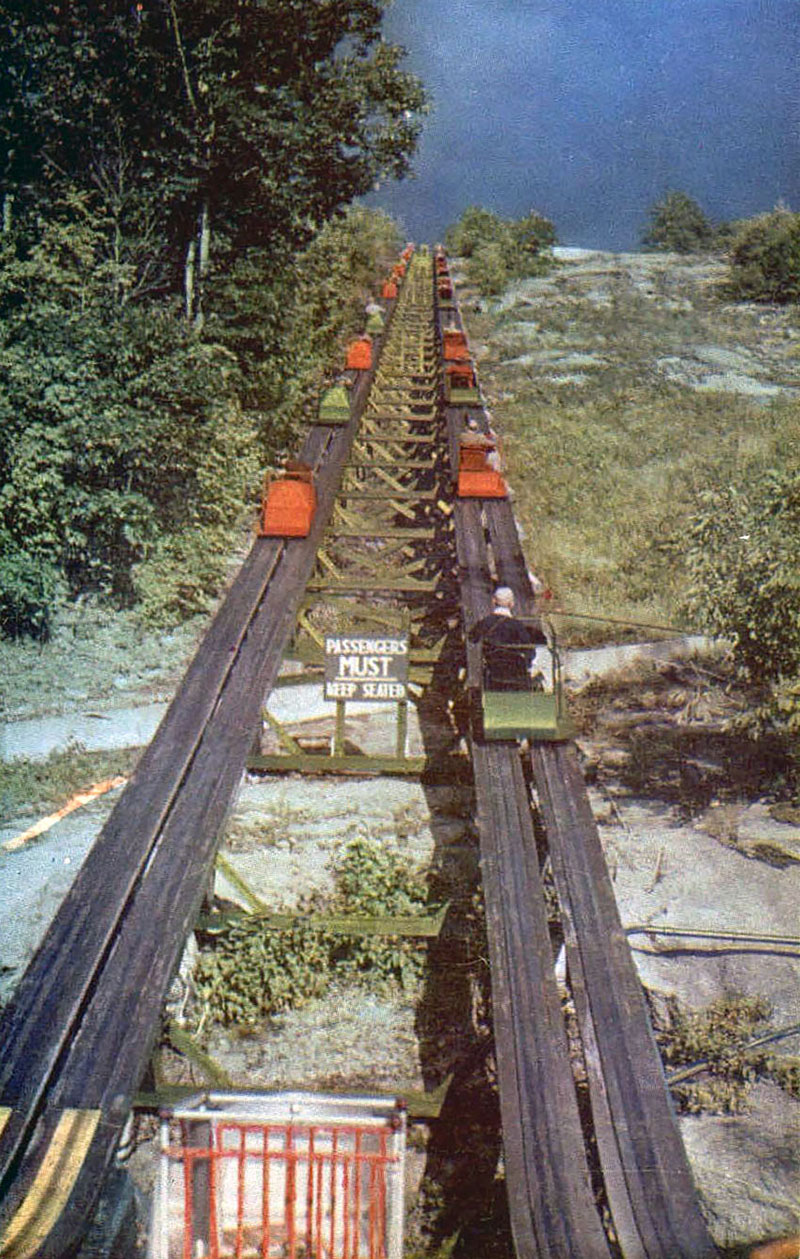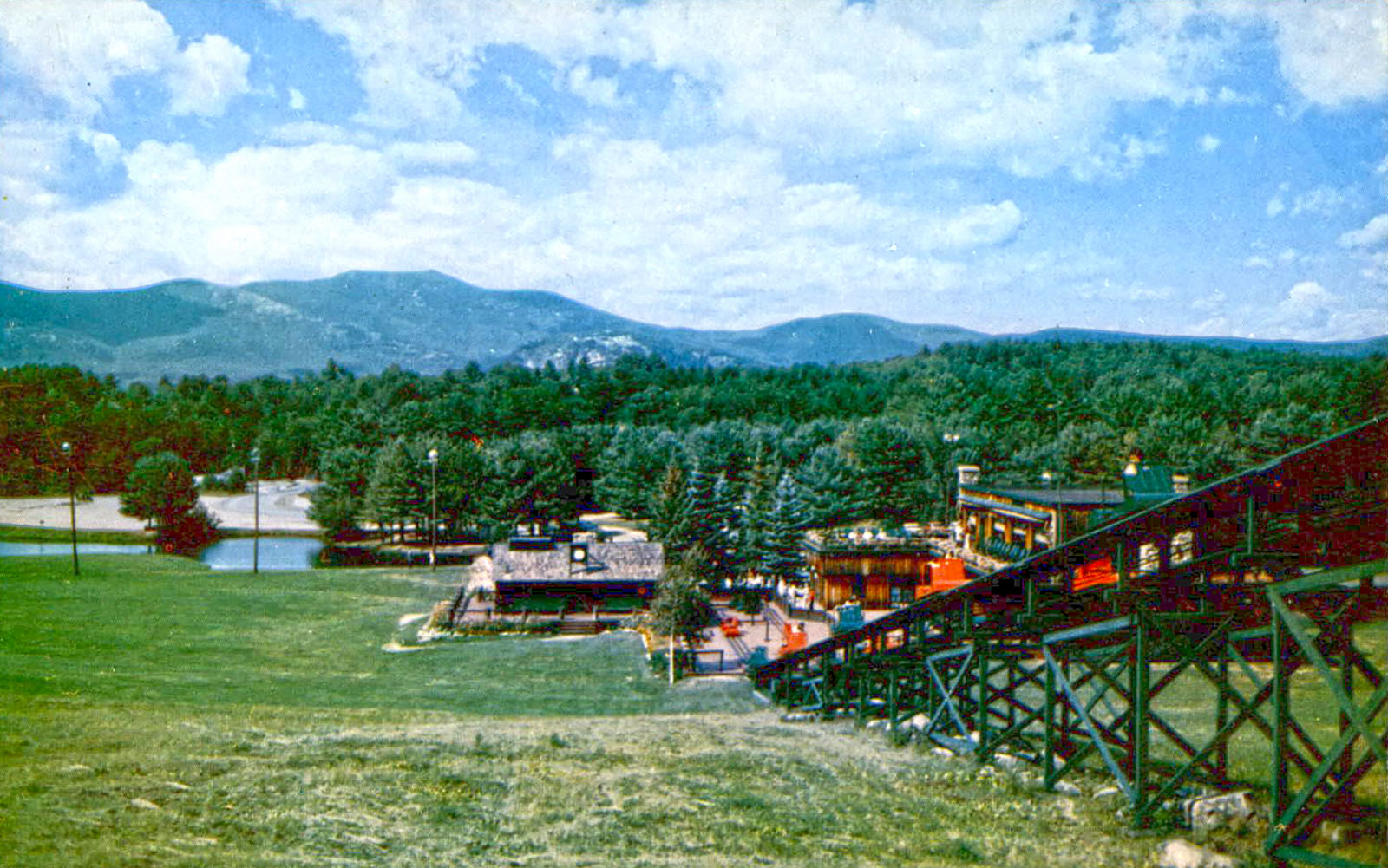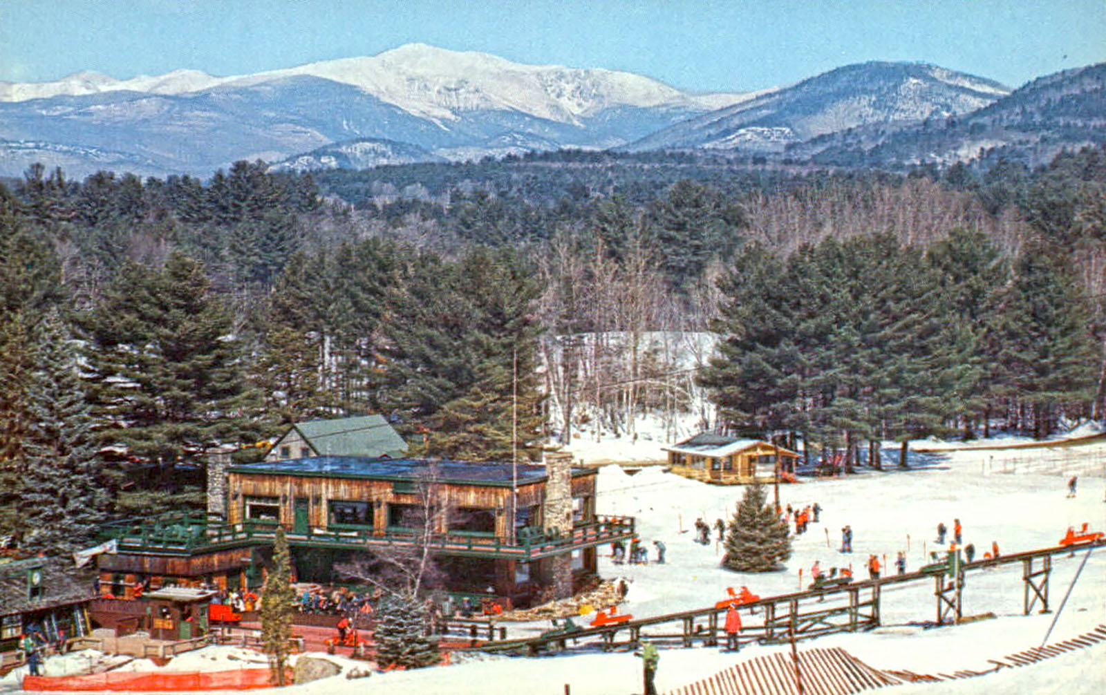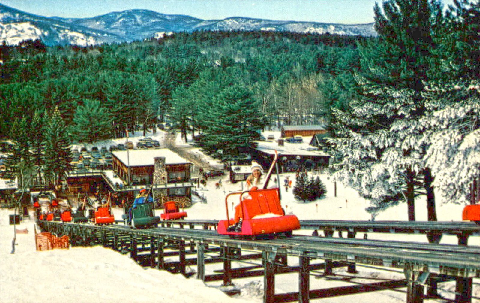 The skimobile operated nearly year-round. It was open the entire summer season (Memorial Day weekend through Labor Day weekend) and the entire winter ski season (mid-December through the end of March). In the fall the skimobile was open until the end of October for the beautiful fall foliage. Straight across the valley were views of the Moat Mountain range. Looking north was a clear view of Mount Washington.